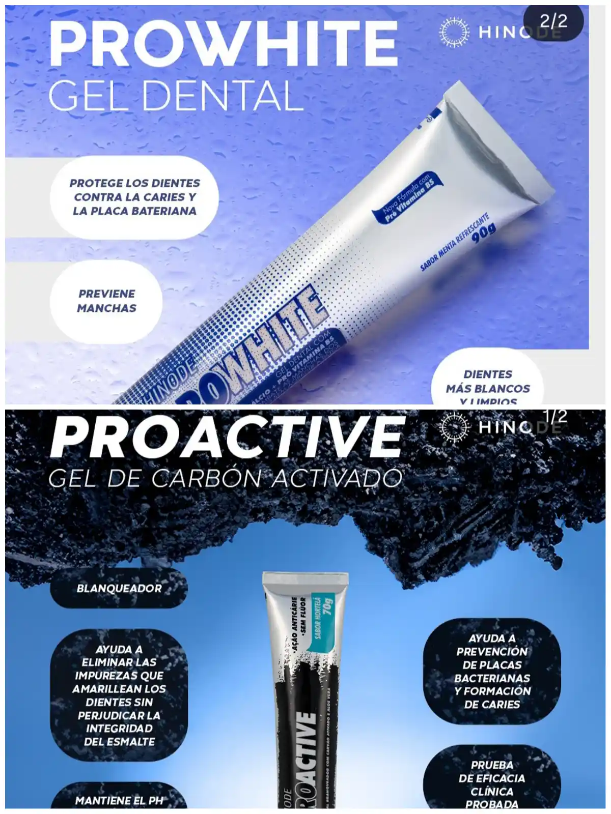 El Gel Dental ProActive de Hinode es un gel blanqueador formulado con ingredientes naturales como carbón activado, xilitol y extracto de aloe vera, diseñado